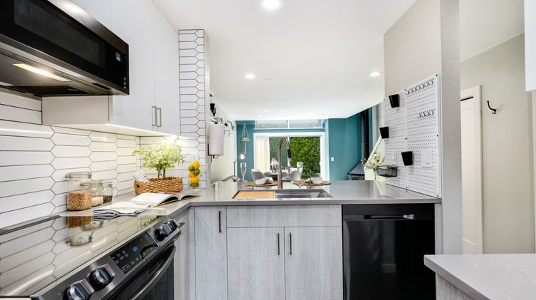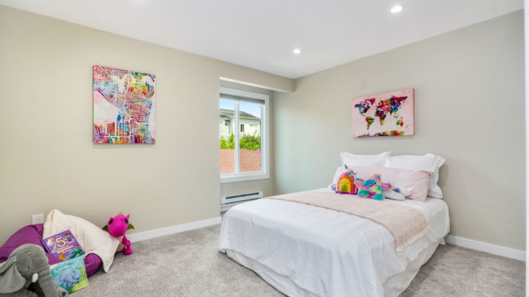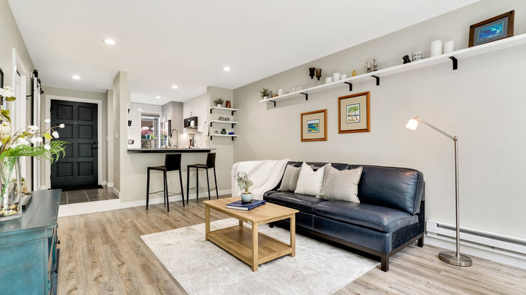 This beautifully updated townhome leaves no detail overlooked. Step inside to discover a stunning kitchen featuring quartz countertops, black stainless appliances, & custom cabinetry with under-cabinet lighting. Just off the kitchen, you'll find a convenient half bath & spacious walk-in storage closet. The eat-in bar flows seamlessly into the living room, filled with natural light & enhanced by custom open shelving, luxury vinyl flooring, & cozy wood-burning fireplace. Upstairs, you’ll find two generously sized bedrooms, a full bathroom, & laundry. Each room is equipped with smart programmable thermostats & energy-efficient heating. Custom window shades—including the skylights—offer style & function. Enjoy your morning coffee on the private patio surrounded by lush greenery. Additional features include a 1 car garage & separate storage unit. Located in the top-rated Northshore School District, close to the Burke-Gilman Trail, restaurants, coffee shops, & shopping.
